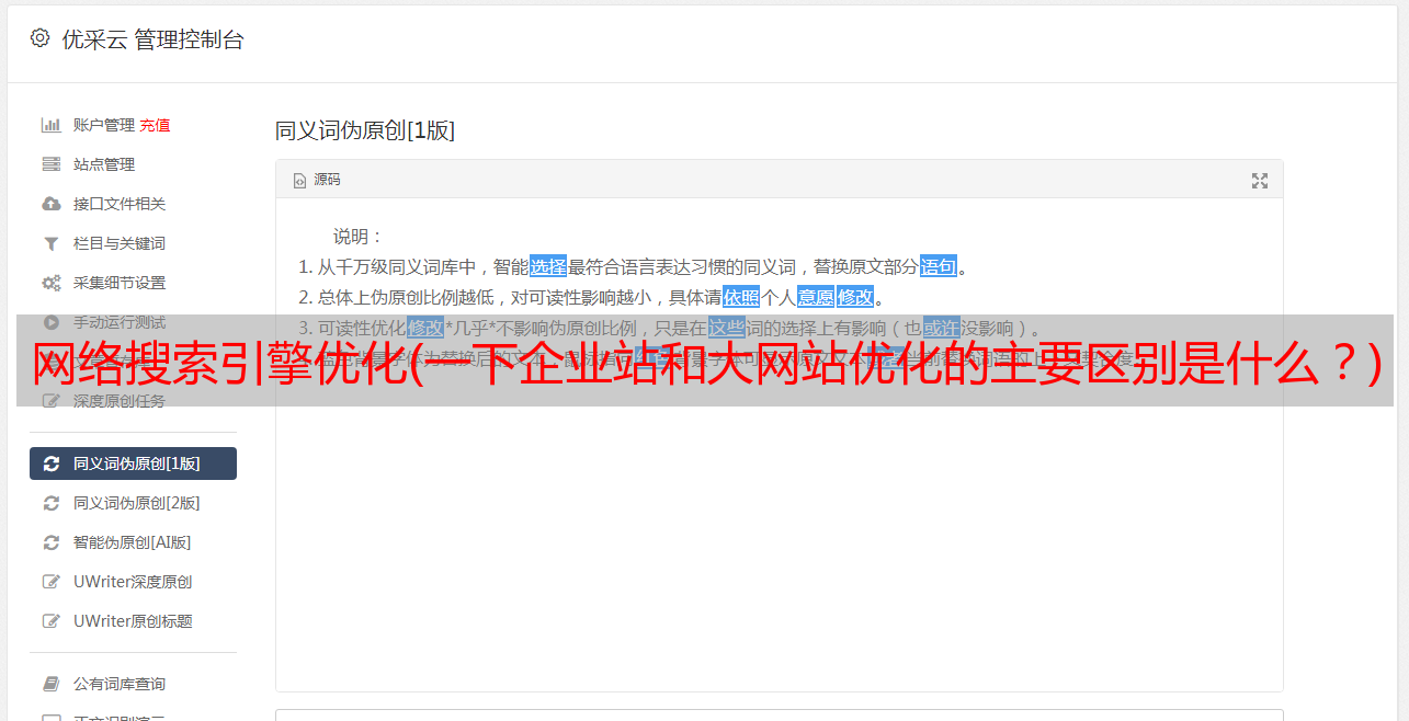 优采云 发布时间: 2022-03-02 11:17网络搜索引擎优化(一下企业站和大网站优化的主要区别是什么?)