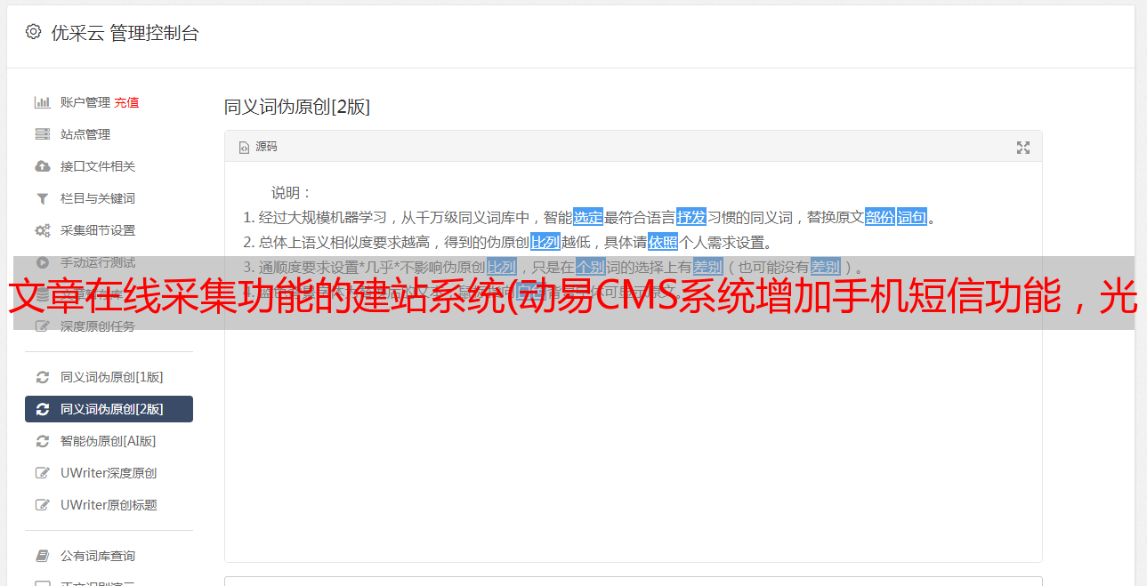 优采云 发布时间: 2022-03-03 09:01文章在线采集功能的建站系统(动易CMS系统增加手机短信功能,光压缩包就有18.5MB之多)