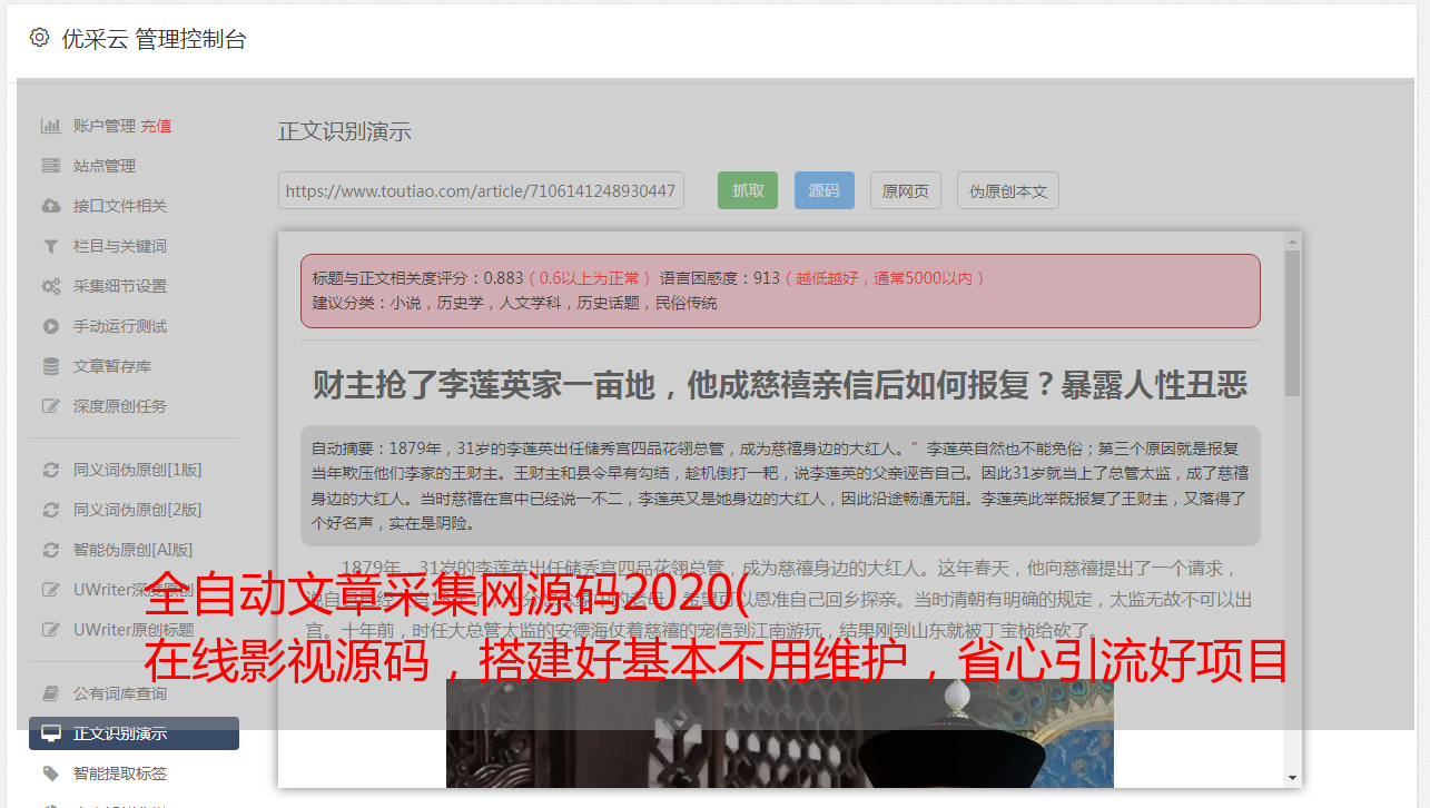 全自动文章采集网源码2020( 在线影视源码,搭建好基本不用维护,省心引流好项目 )