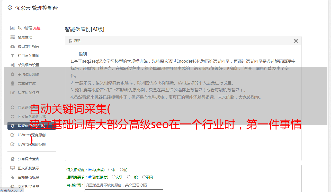 优采云 发布时间: 2022-03-04 20:07建立基础词库大部分高级seo在一个行业时,第一件事情
