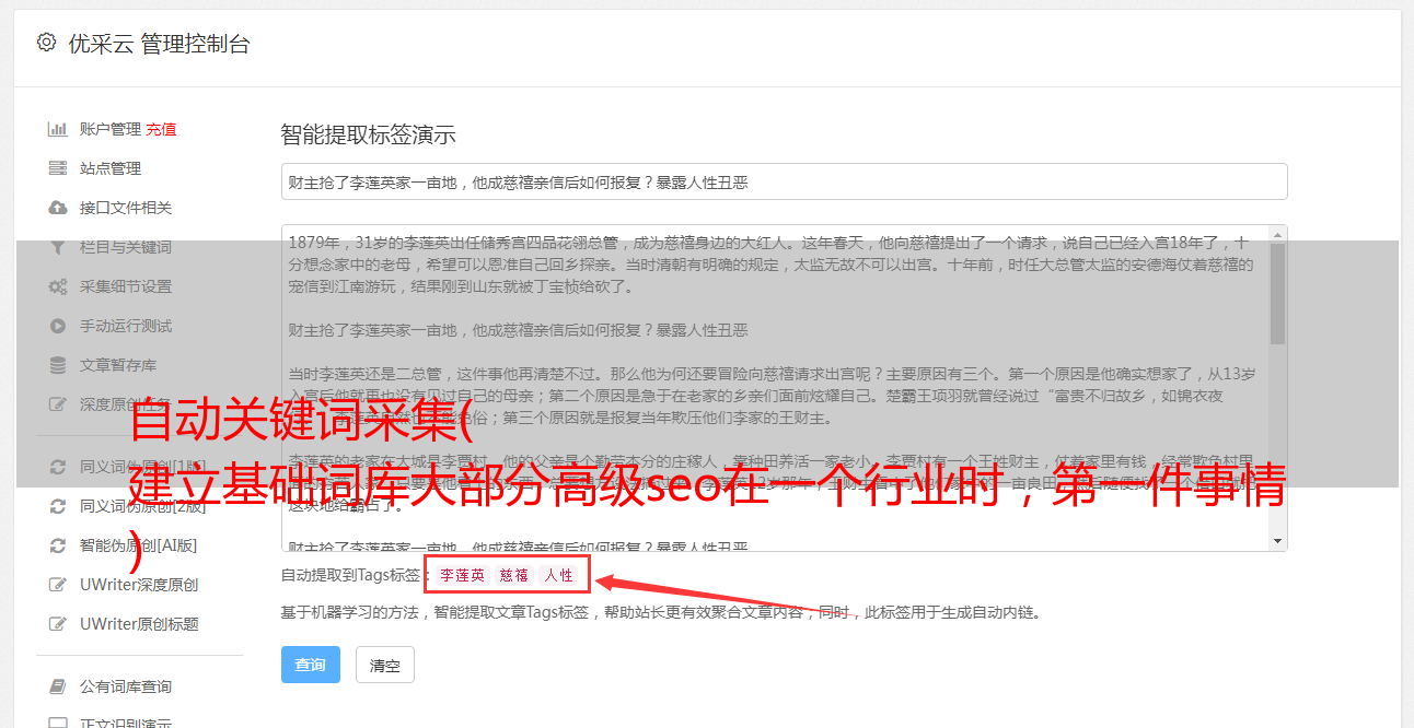 这个过程5118已经在数百个不同的网站后台实践,让这些网站可以从繁重枯燥的内容编辑工作中解放出来,通过人工参与,而不是简单的采集,达到更高的价值。