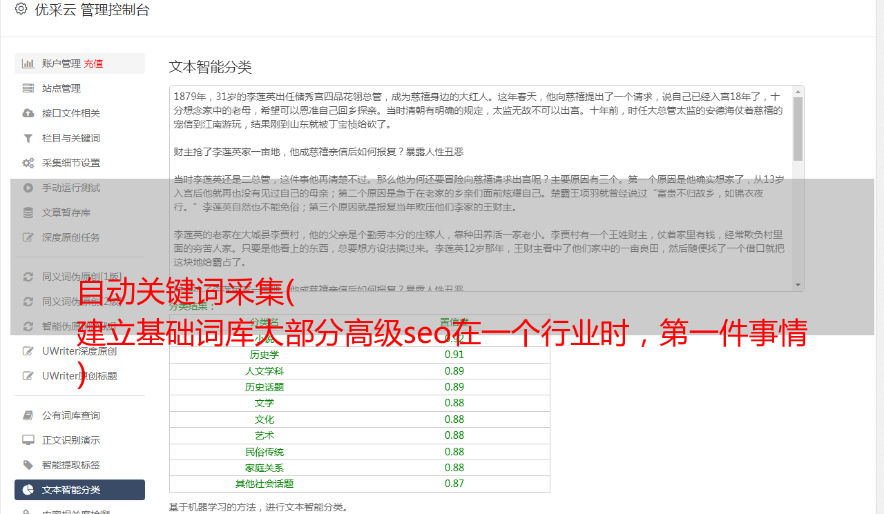 当我们制作大量素材采集源码爬虫的时候,我们会得到很多围绕基础词库的文章,这些都是我们以后制作伪原创的素材。