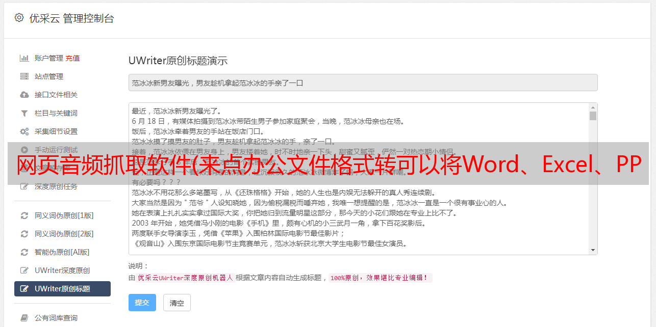 优采云 发布时间: 2022-03-05 14:24网页音频抓取软件(来点办公文件格式转可以将Word、Excel、PPT、JPG格式文件转换为PDF文件)