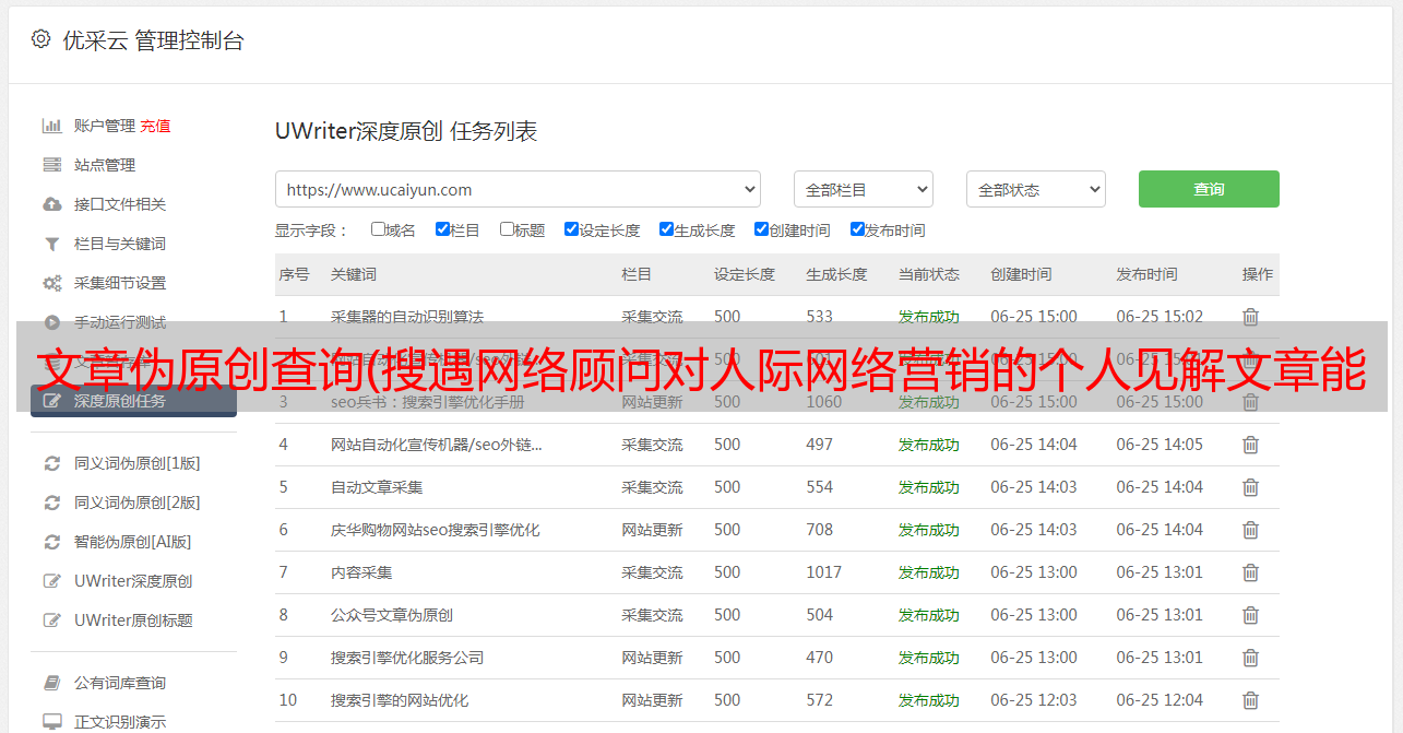优采云 发布时间: 2022-03-05 16:15文章伪原创查询(搜遇网络顾问对人际网络营销的个人见解文章能够骗过搜索引擎么)