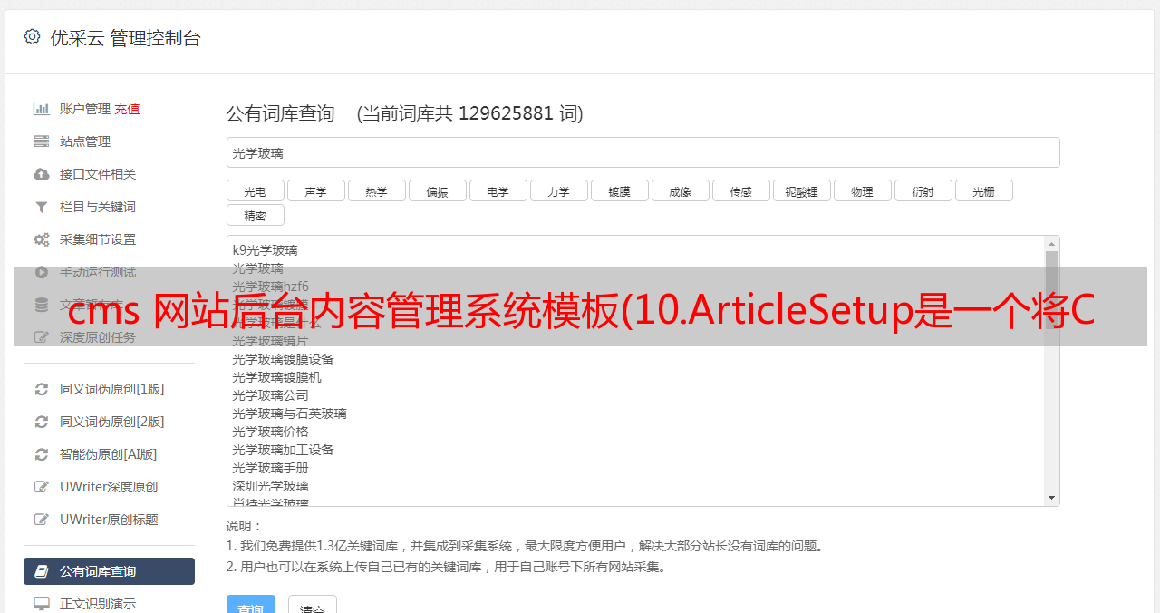 优采云 发布时间: 2022-03-05 18:06cms 网站后台内容管理系统模板(10.ArticleSetup是一个将CMS和Framework两个概念完美结合的内容管理系统)