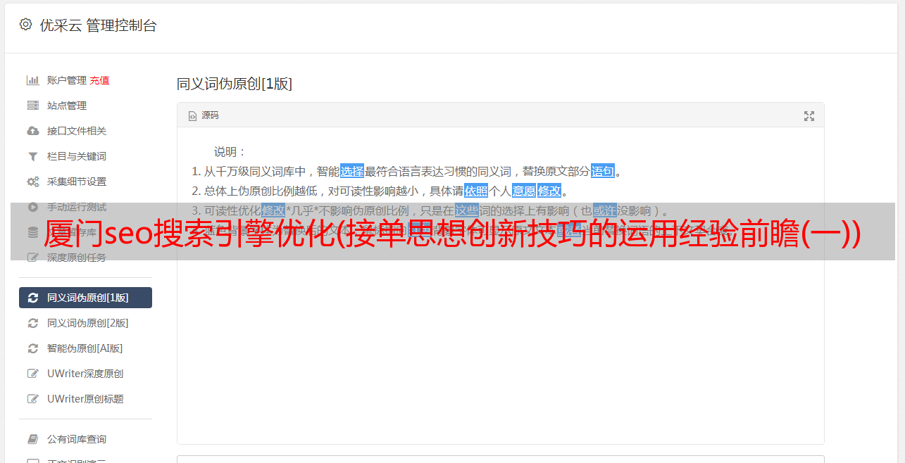 优采云 发布时间: 2022-03-05 22:00厦门seo搜索引擎优化(接单思想创新技巧的运用经验前瞻(一))