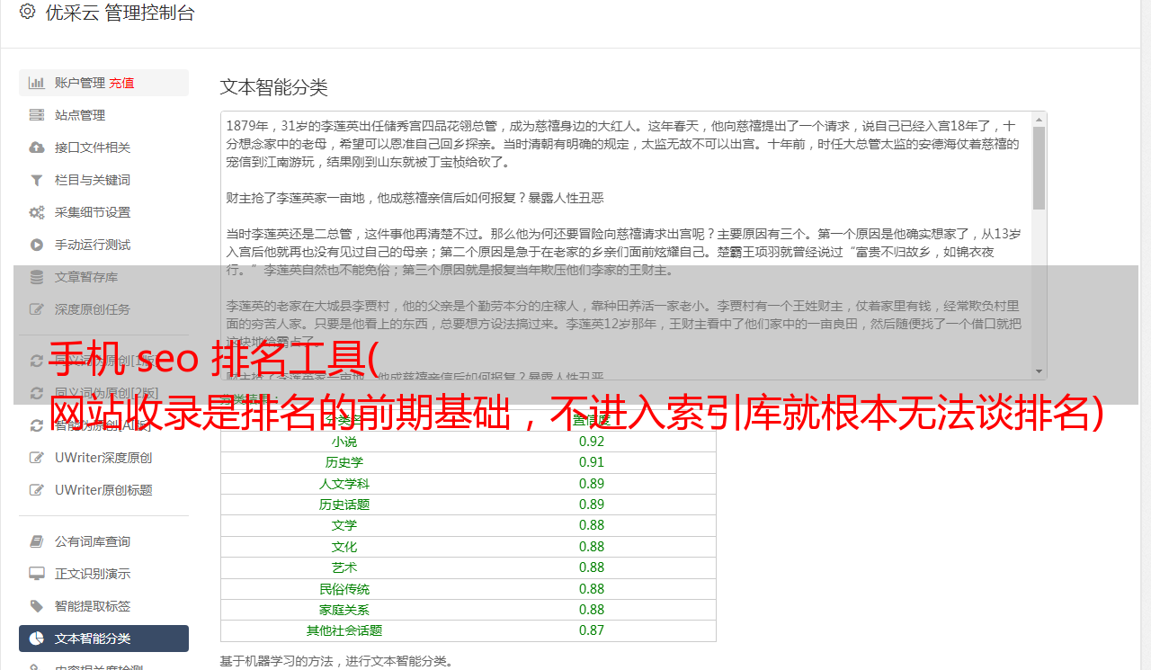 手机 seo 排名工具( 网站收录是排名的前期基础,不进入索引库就根本无法谈排名)