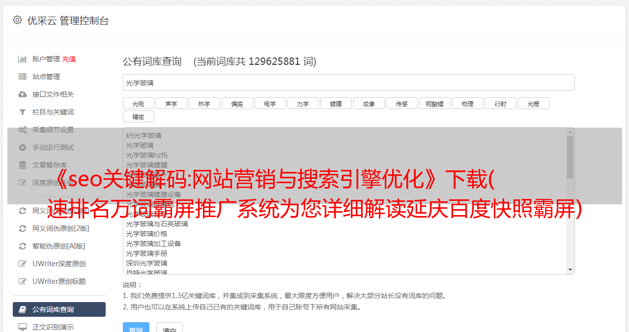 《seo关键解码:网站营销与搜索引擎优化》下载( 速排名万词霸屏推广系统为您详细解读延庆百度快照霸屏)