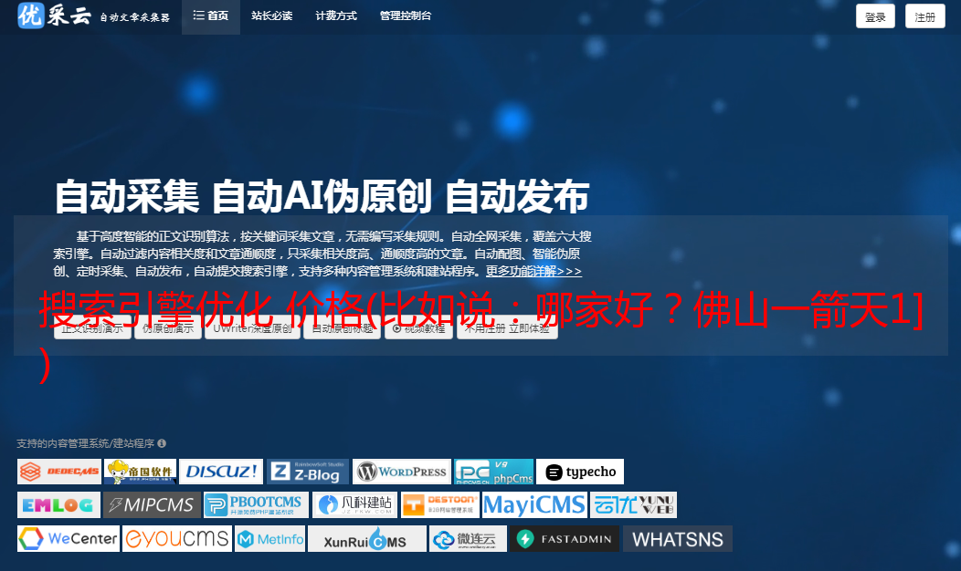 优采云 发布时间: 2022-03-06 18:15搜索引擎优化 价格(比如说:哪家好?佛山一箭天1]