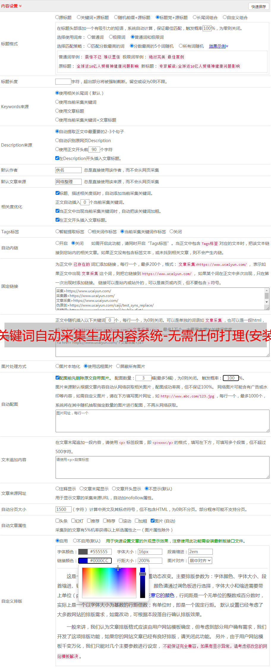 使用是否开启发布接口。白天只想做采集,晚上发布的时候可以关掉配置。具体效果请自行体验。