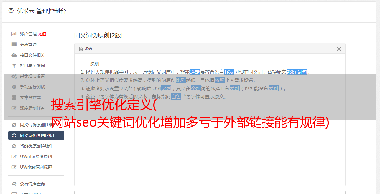 优采云 发布时间: 2022-03-06 23:02搜索引擎优化定义(