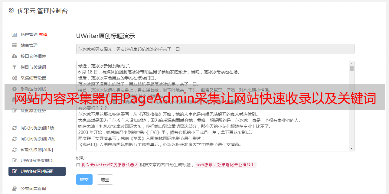 网站内容采集器(用PageAdmin采集让网站快速收录以及关键词排名的基础工作)