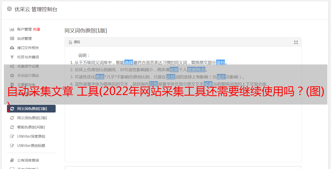 优采云 发布时间: 2022-03-07 13:27自动采集文章 工具(2022年网站采集工具还需要继续使用吗?(图)