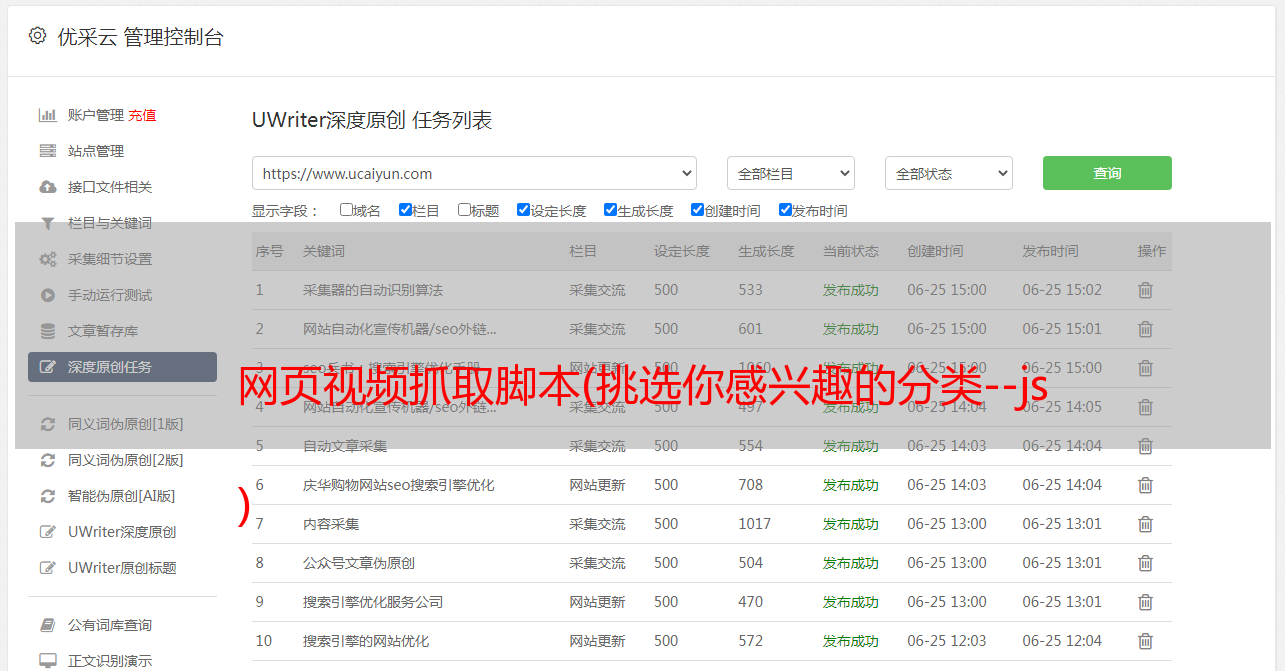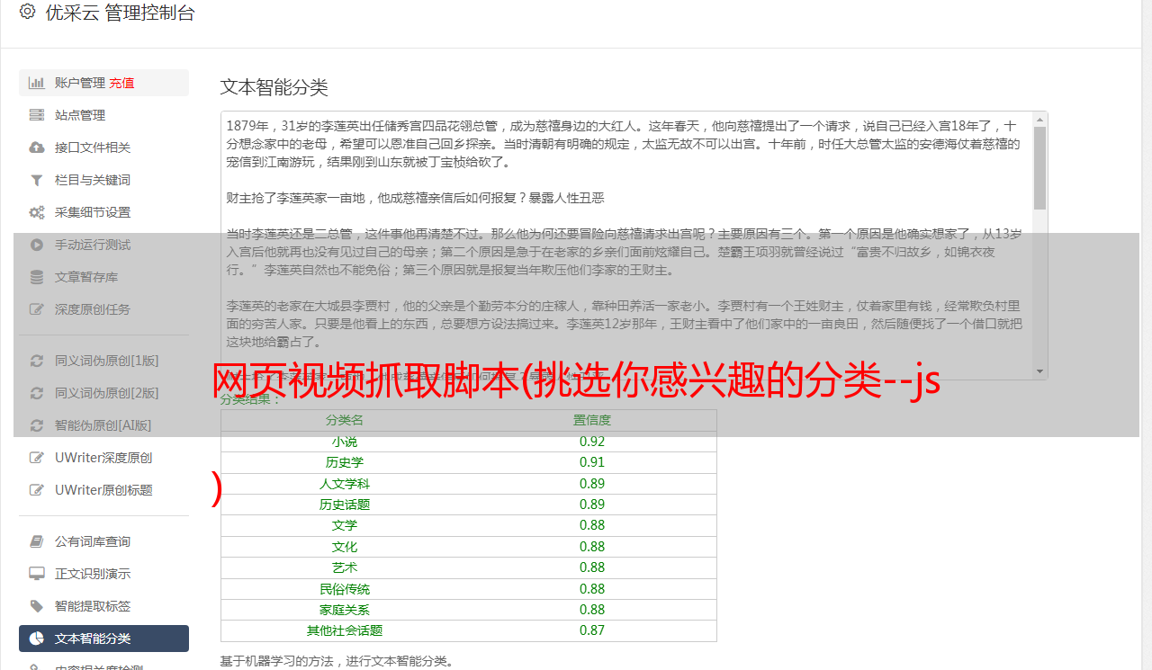 网页视频抓取脚本(挑选你感兴趣的分类--js )