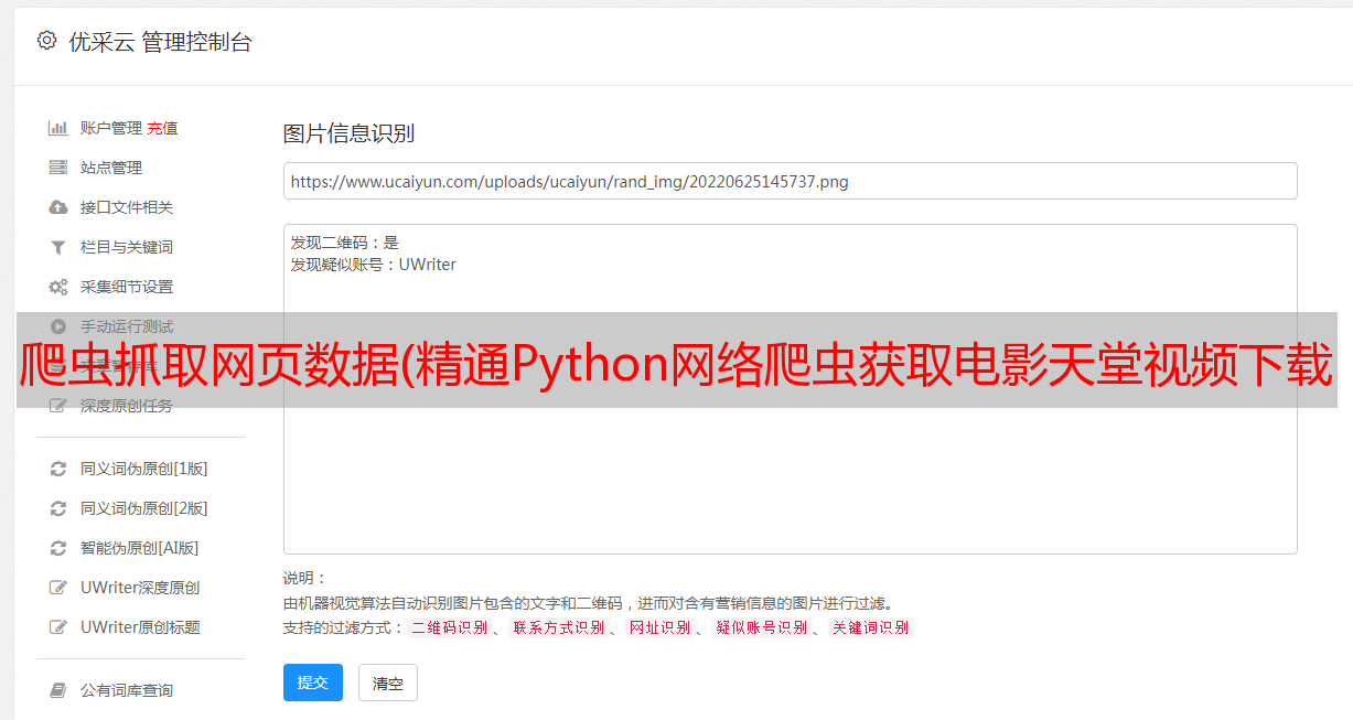 什么是网络爬虫 网络爬虫,也称为网络蜘蛛,是指按照一定的规则在网络上爬取所需内容的脚本程序。众所周知,每个网页通常都收录其他网页的入口,网络爬虫通过一个URL依次进入其他网址,获取想要的内容。优先声明:我们使用的python编译环境是PyCharm 一、首先是一个网络爬虫