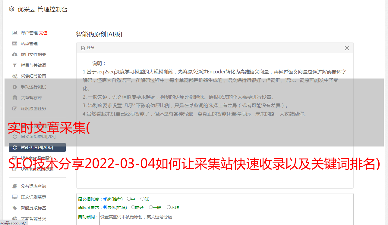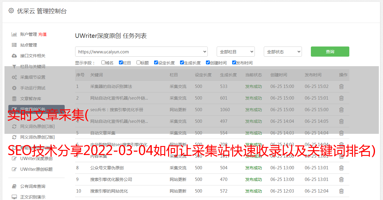 实时文章采集( SEO技术分享2022-03-04如何让采集站快速收录以及关键词排名)