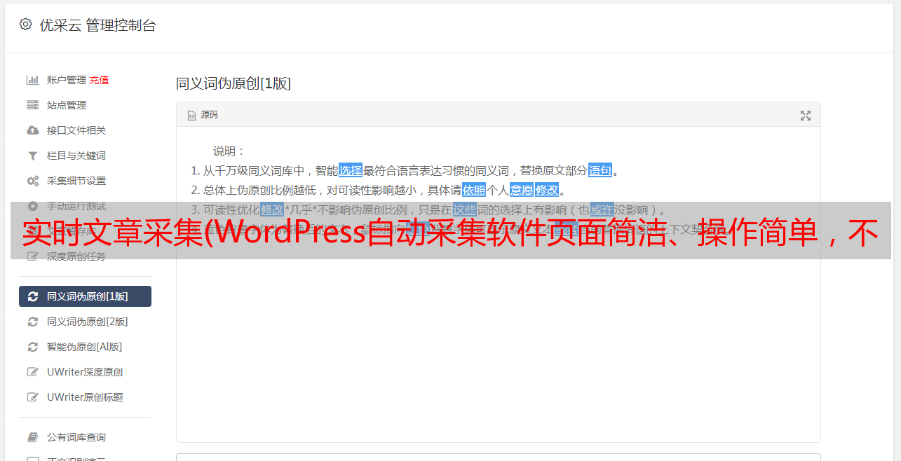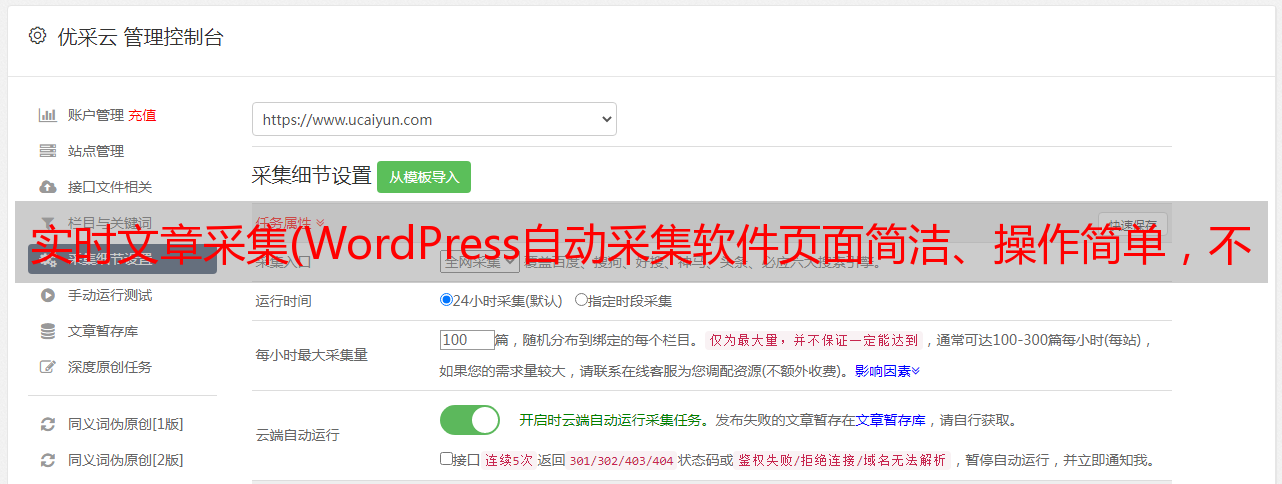 实时文章采集(WordPress自动采集软件页面简洁、操作简单,不需要掌握专业的规则配置 )