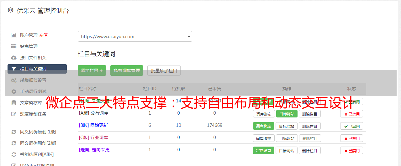 微企点三大特点支撑:支持自由布局和动态交互设计