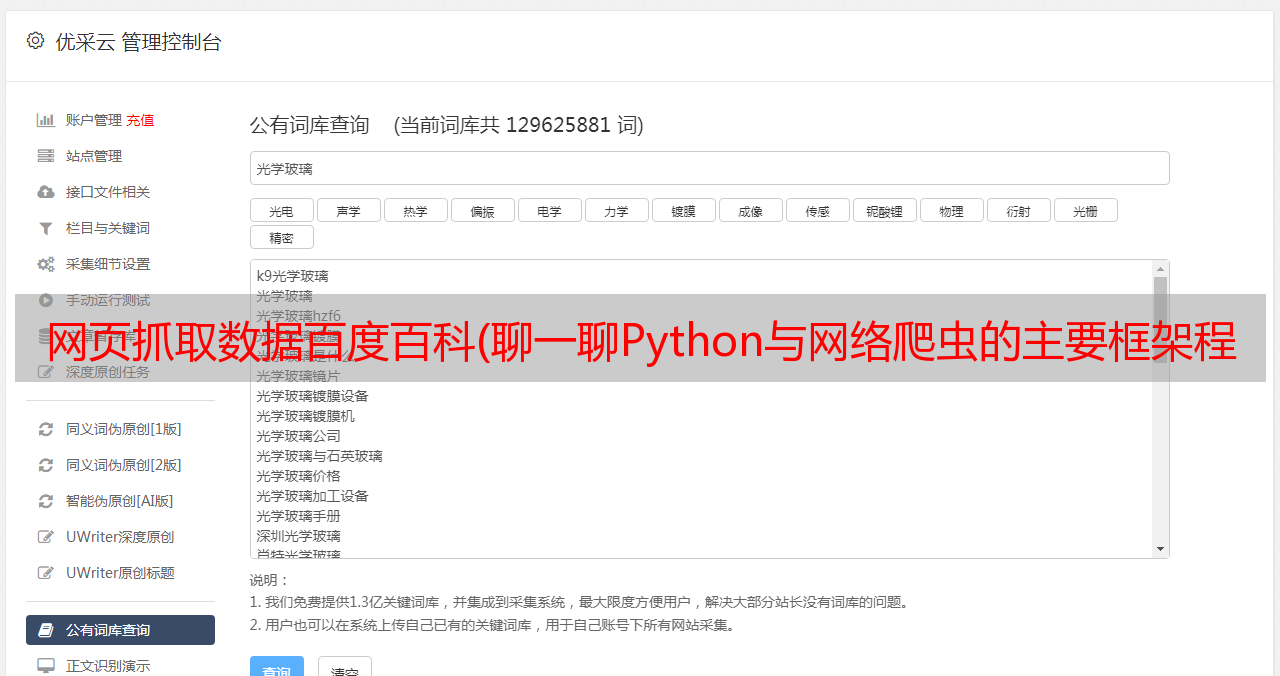 优采云 发布时间: 2022-03-09 19:26网页抓取数据百度百科(聊一聊Python与网络爬虫的主要框架程序的特点及应用)