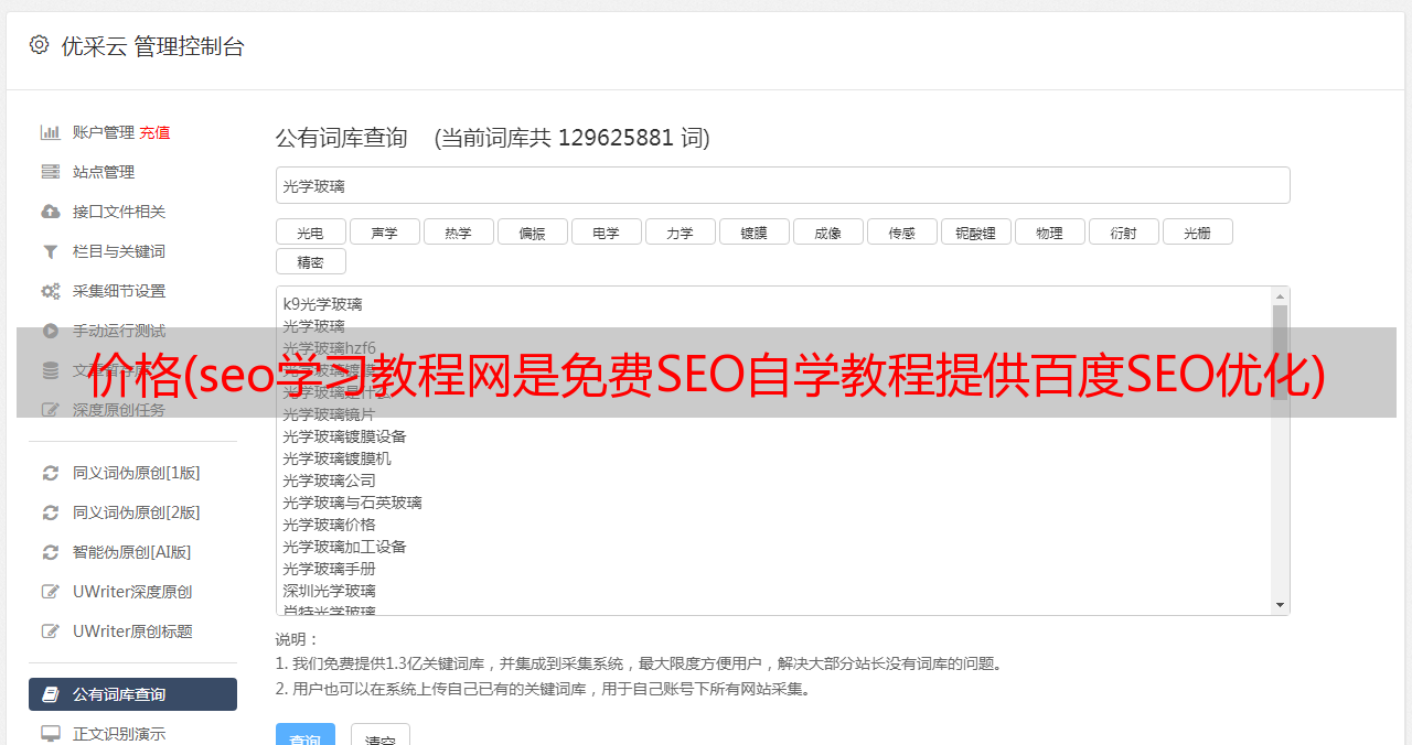 优采云 发布时间: 2022-03-10 02:22价格(seo学习教程网是免费SEO自学教程提供百度SEO优化)