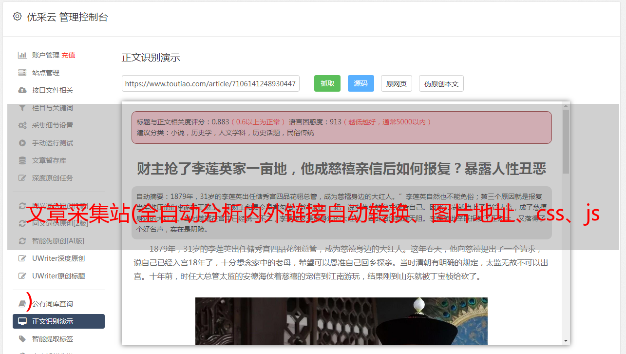 文章采集站(全自动分析内外链接自动转换、图片地址、css、js )