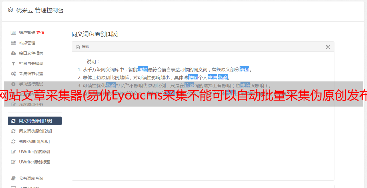 优采云 发布时间: 2022-03-10 17:06网站文章采集器(易优Eyoucms采集不能可以自动批量采集伪原创发布(组图)