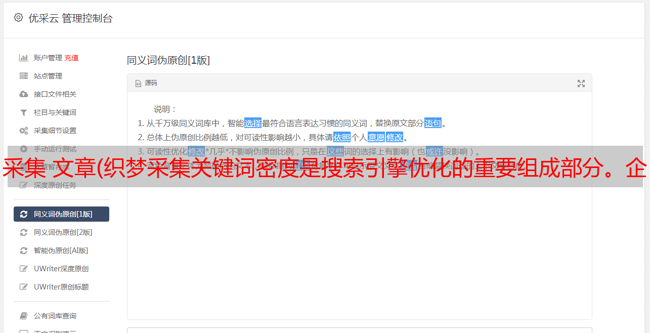 优采云 发布时间: 2022-03-11 00:10采集 文章(织梦采集关键词密度是搜索引擎优化的重要组成部分。企业