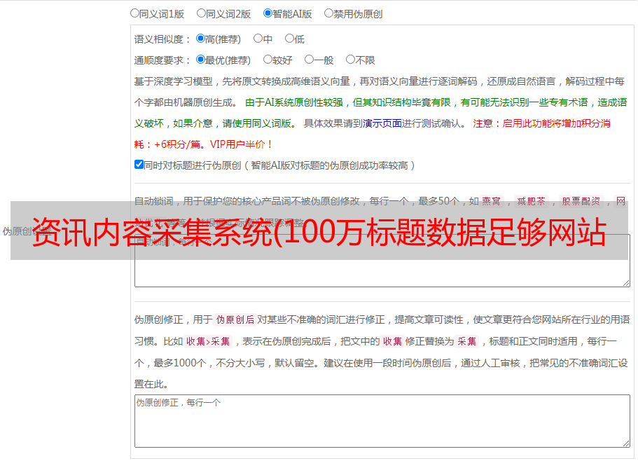 资讯内容采集系统(100万标题数据足够网站站长操作所有大数据站群)