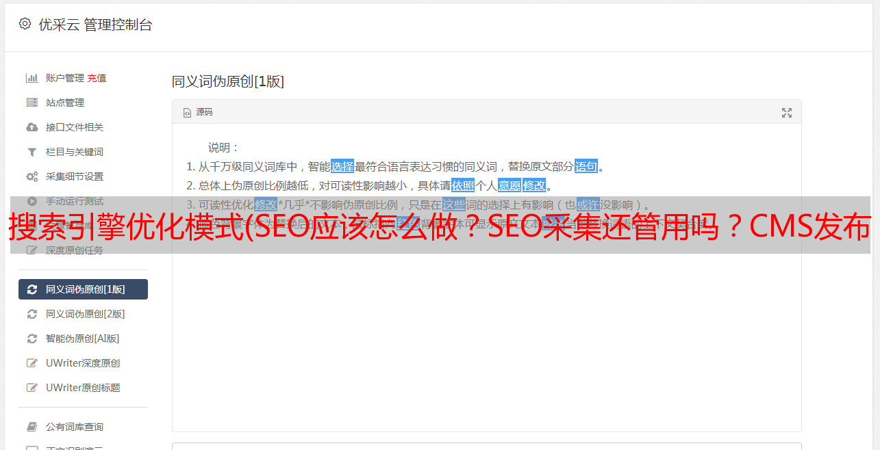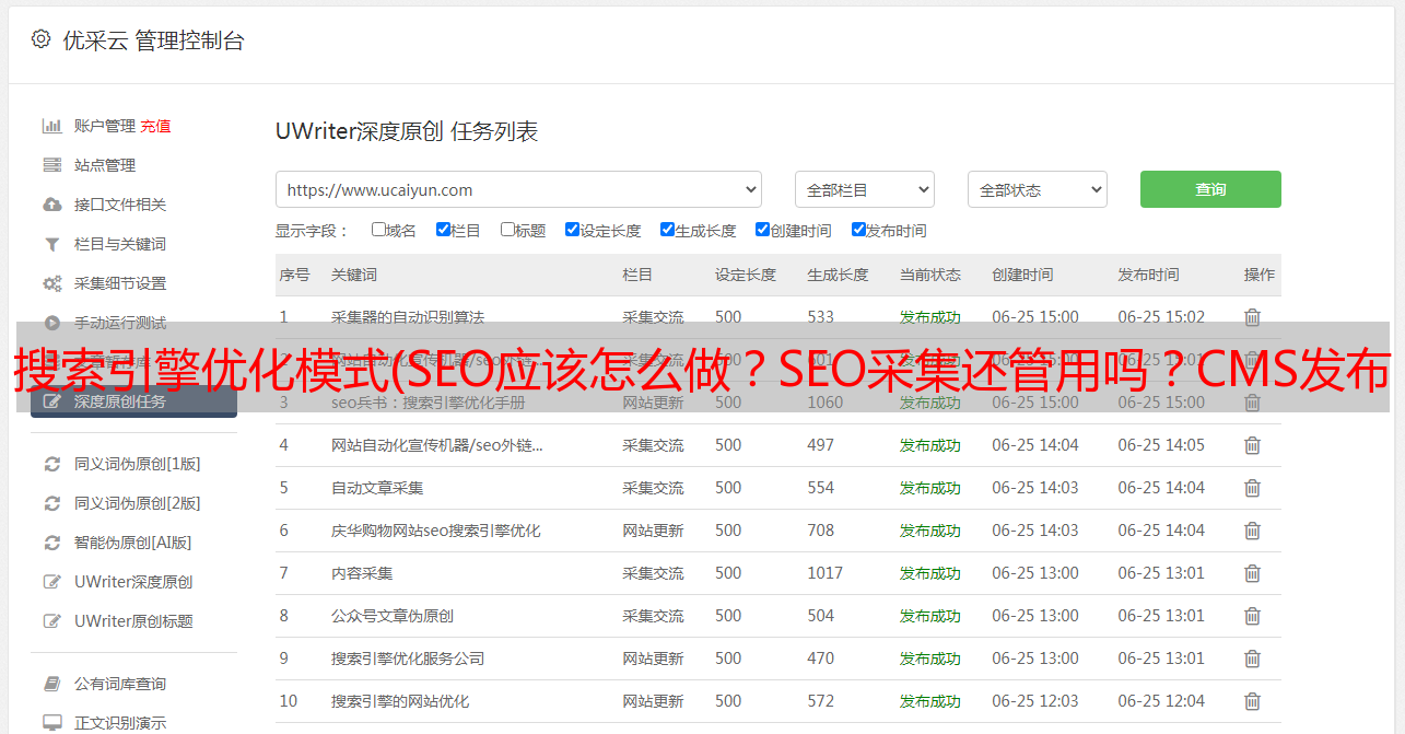 优采云 发布时间: 2022-03-11 18:06搜索引擎优化模式(SEO应该怎么做?SEO采集还管用吗?CMS发布