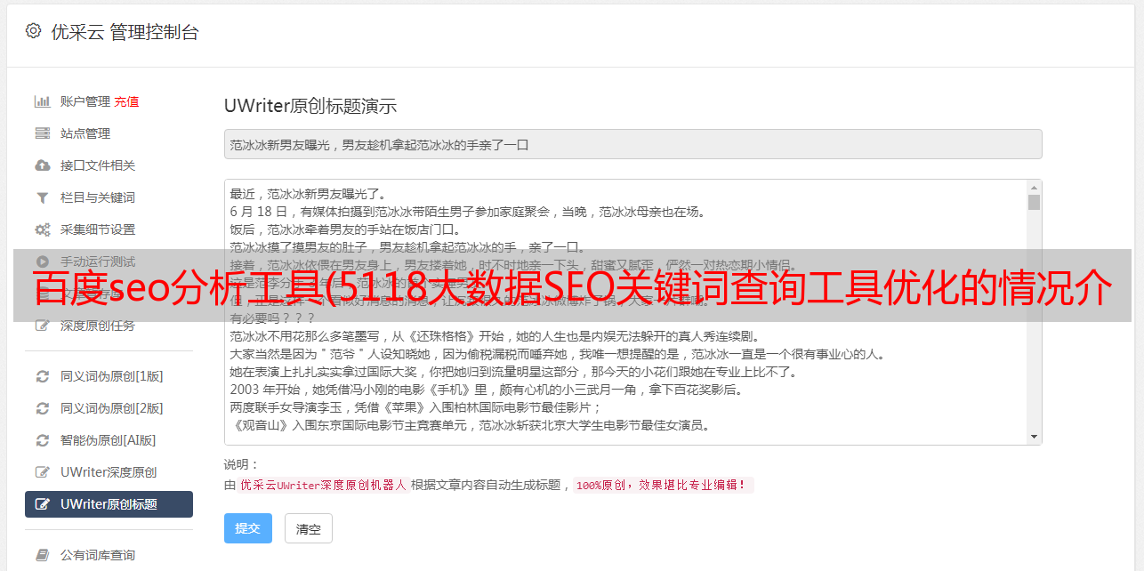 优采云 发布时间: 2022-03-12 06:11百度seo分析工具(5118大数据SEO关键词查询工具优化的情况介绍!)