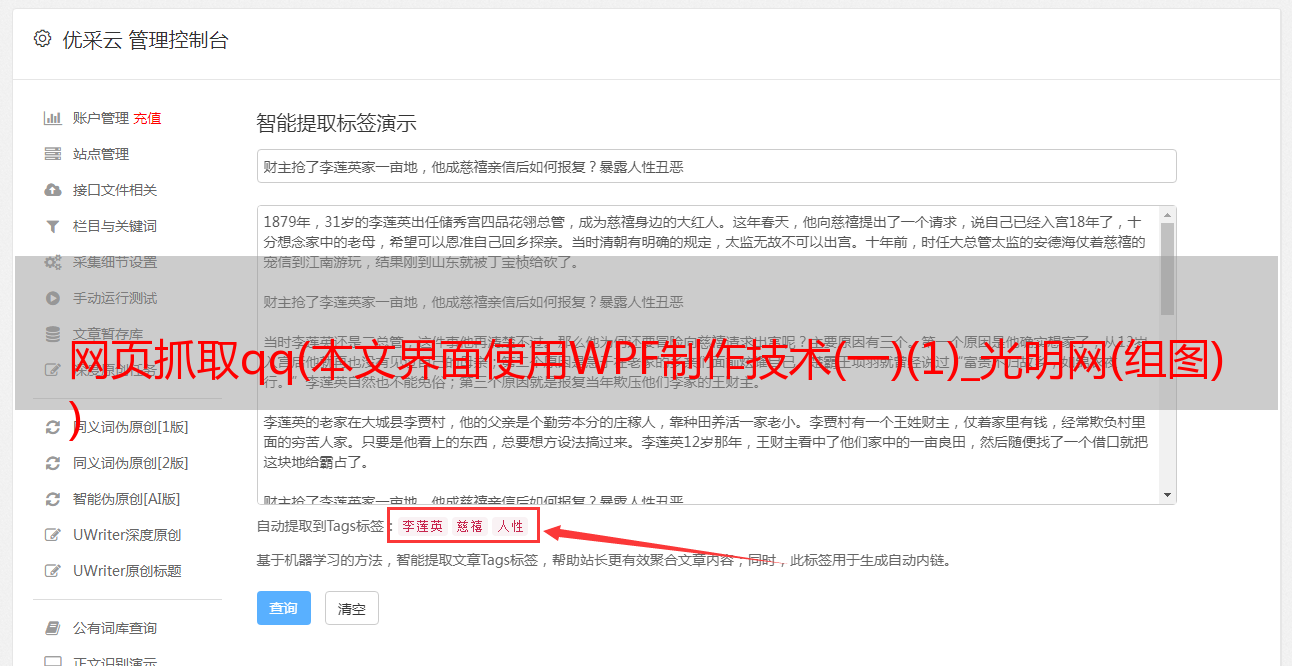 优采云 发布时间: 2022-03-12 09:15网页抓取qq(本文界面使用WPF制作技术(一)(1)_光明网(组图)