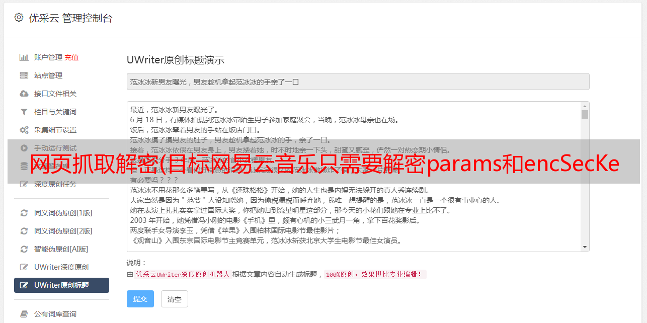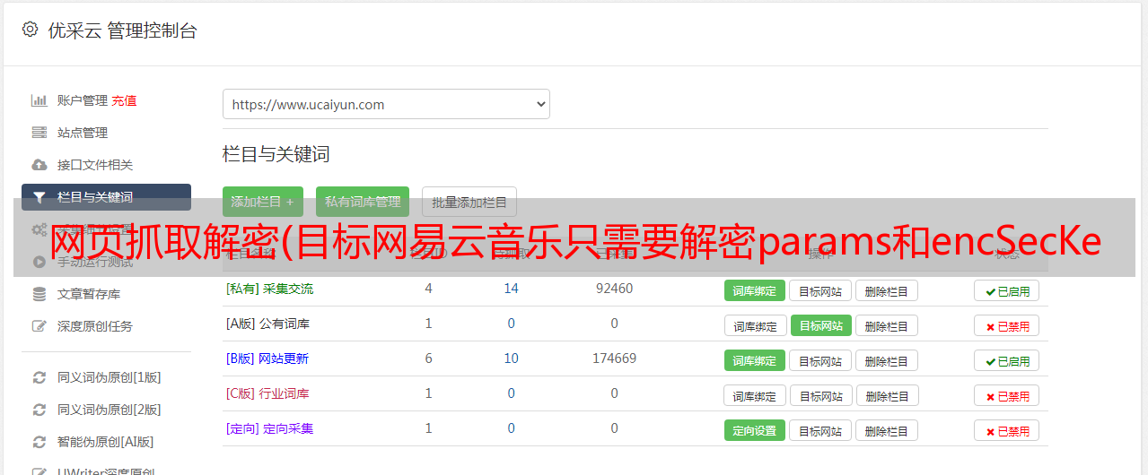 优采云 发布时间: 2022-03-12 16:03网页抓取解密(目标网易云音乐只需要解密params和encSecKey就可以快乐的了)