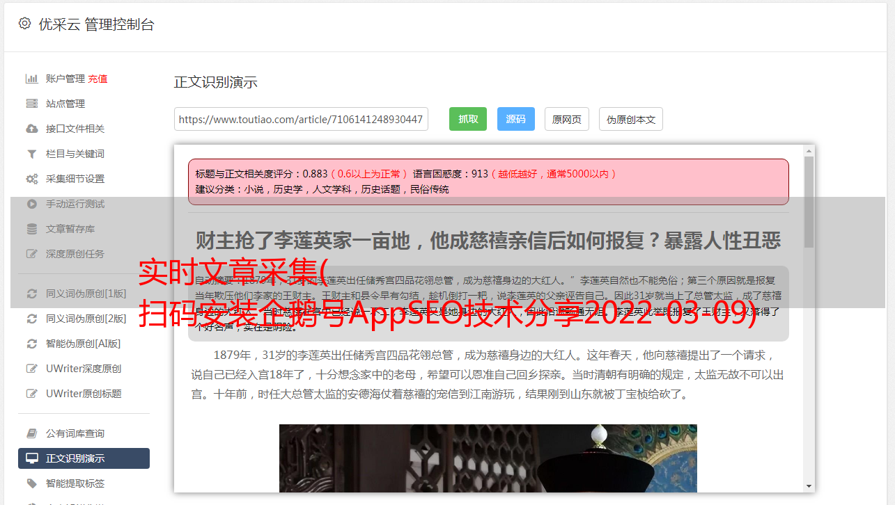 实时文章采集( 扫码安装企鹅号AppSEO技术分享2022-03-09)