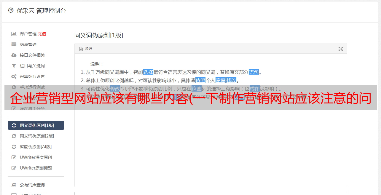 优采云 发布时间: 2022-03-12 18:07企业营销型网站应该有哪些内容(一下制作营销网站应该注意的问题都有哪些呢?)