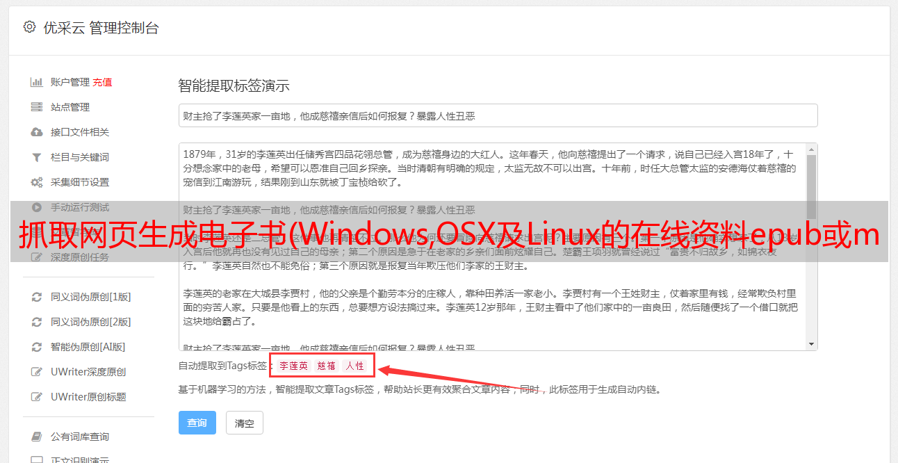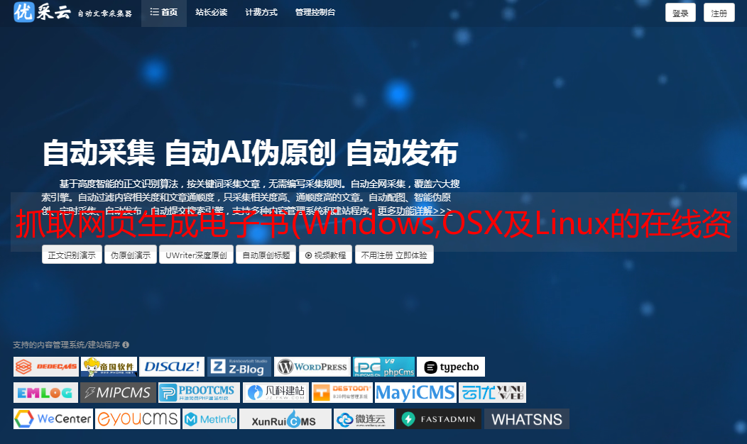 优采云 发布时间: 2022-03-13 01:22抓取网页生成电子书(Windows,OSX及Linux的在线资料epub或mobi格式)