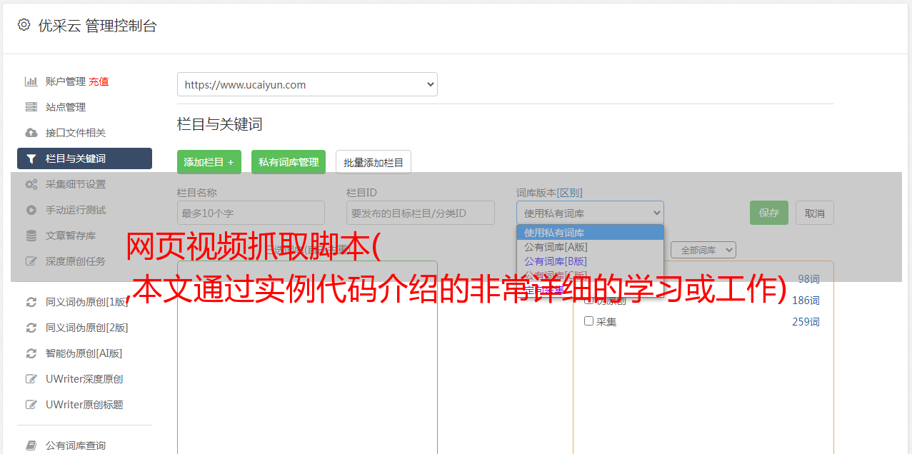 优采云 发布时间: 2022-03-13 03:02网页视频抓取脚本(