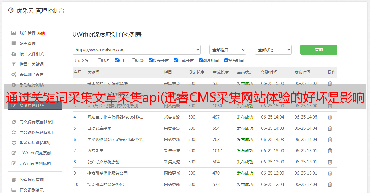 优采云 发布时间: 2022-03-13 06:18通过关键词采集文章采集api(迅睿CMS采集网站体验的好坏是影响网站最为关键因素