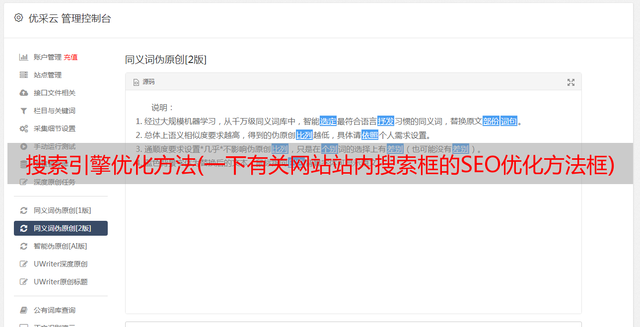 优采云 发布时间: 2022-03-13 11:00搜索引擎优化方法(一下有关网站站内搜索框的SEO优化方法框)