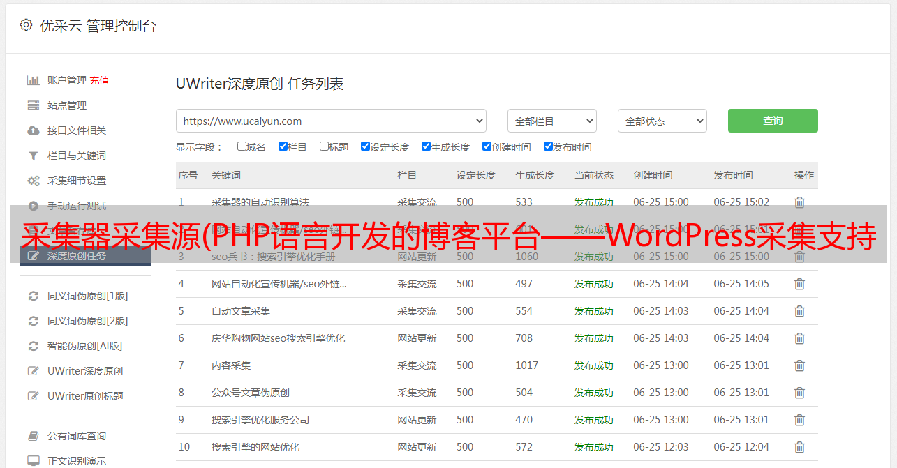 WordPress采集可以直接监控是否已发布待发布伪原创发布状态URL程序发布时间等。WordPress采集 让用户只需设置关键词 和相关要求,即可实现完全托管、零维护的网站 内容更新。WordPress采集无限网站WordPress的数量采集无论是单个网站还是站群,WordPress采集都可以很方便的管理.