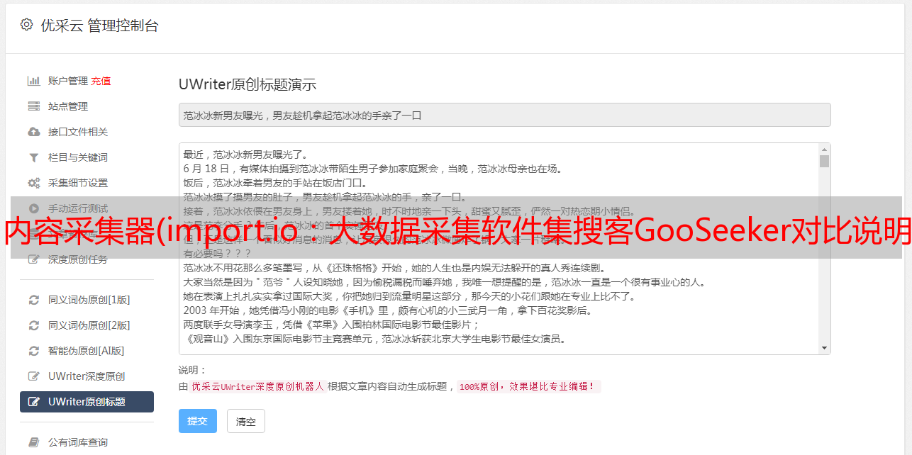内容采集器(import.io:大数据采集软件集搜客GooSeeker对比说明 )