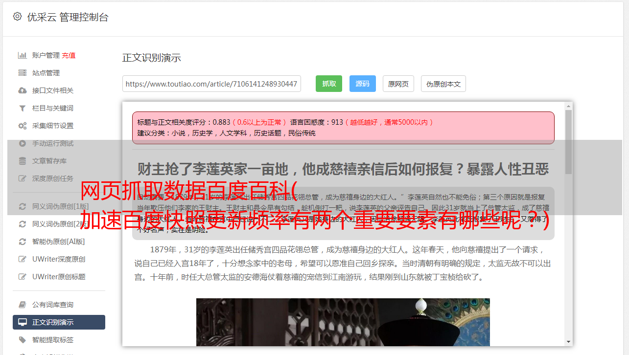 网页抓取数据百度百科( 加速百度快照更新频率有两个重要要素有哪些呢?)