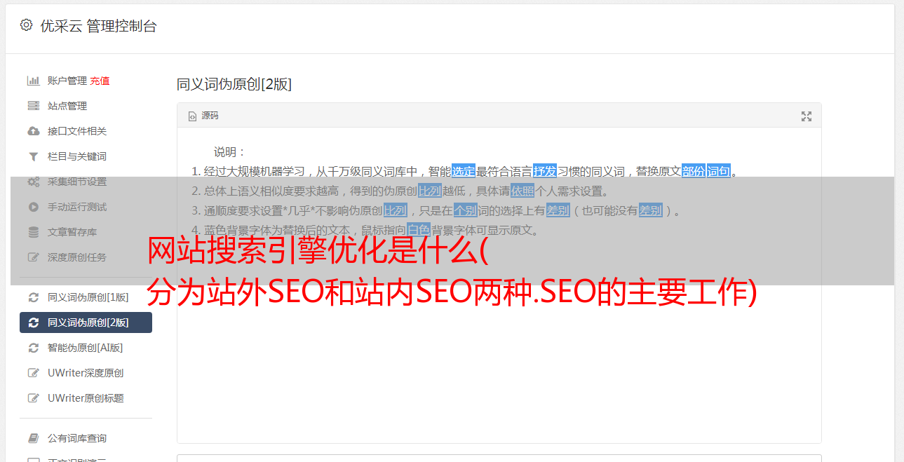 优采云 发布时间: 2022-03-14 00:27网站搜索引擎优化是什么(