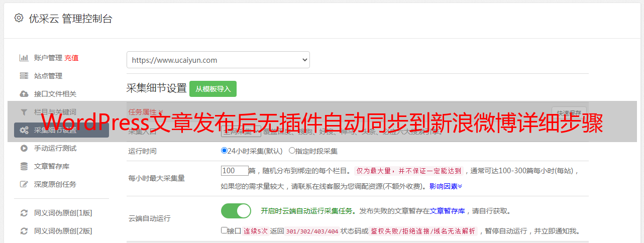 优采云 发布时间: 2021-05-09 20:08WordPress文章发布后无插件自动同步到新浪微博详细步骤