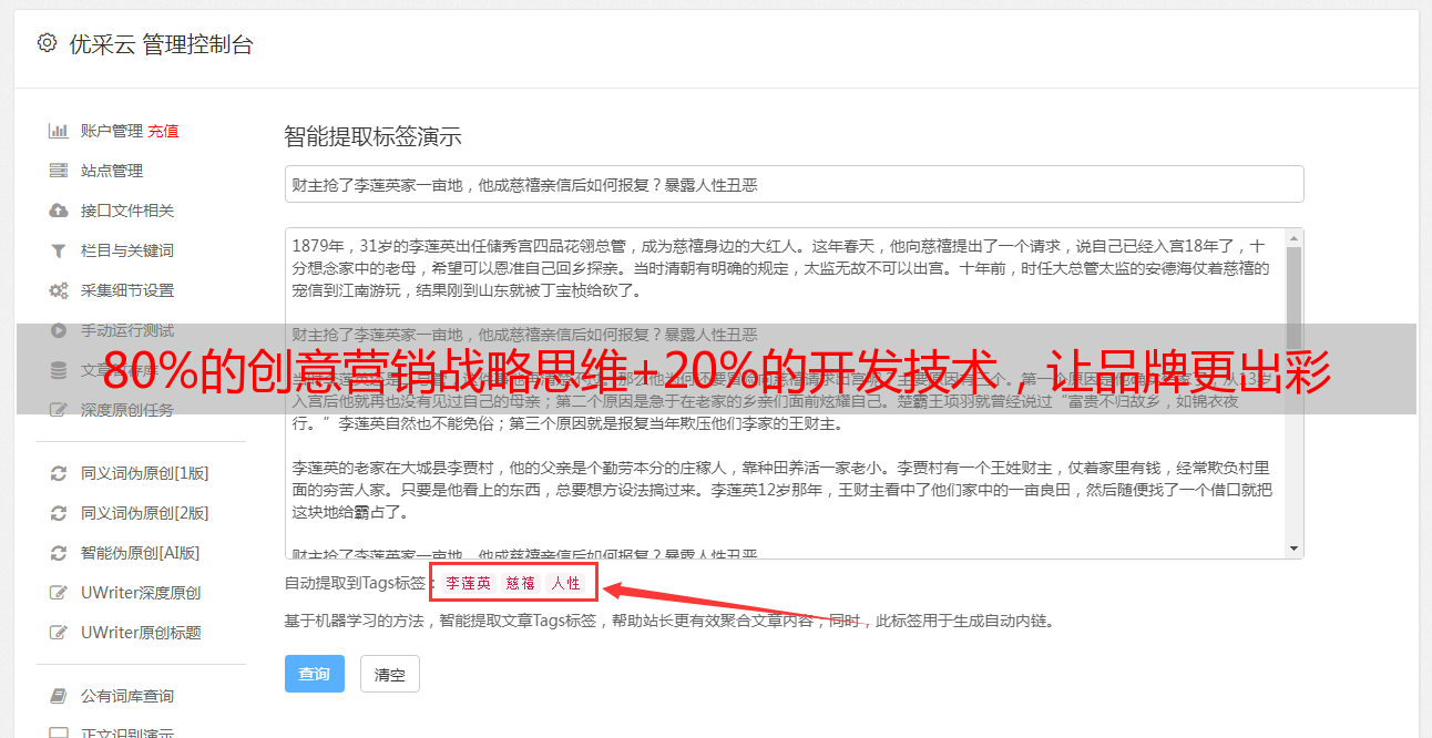 优采云 发布时间: 2021-05-09 20:2180%的创意营销战略思维+20%的开发技术,让品牌更出彩
