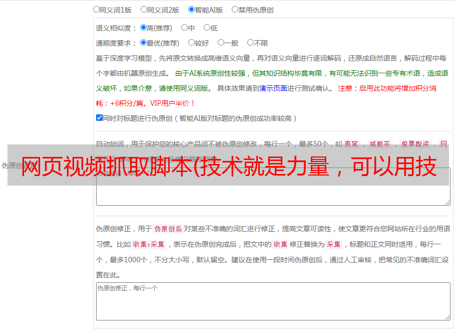 优采云 发布时间: 2022-03-15 15:14网页视频抓取脚本(技术就是力量,可以用技术吃一次冠冕堂皇的“霸王餐”)