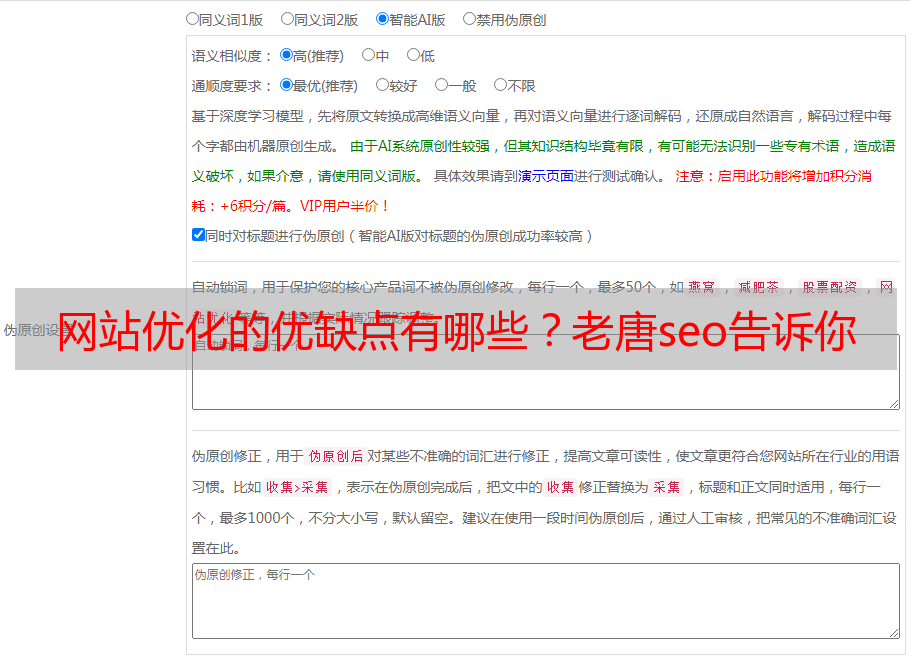优采云 发布时间: 2021-05-10 01:01网站优化的优缺点有哪些?老唐seo告诉你
