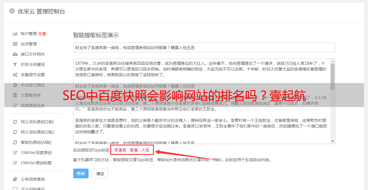 优采云 发布时间: 2021-05-10 02:15SEO中百度快照会影响网站的排名吗?壹起航