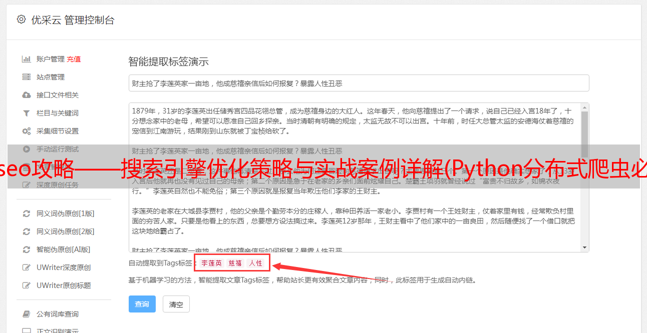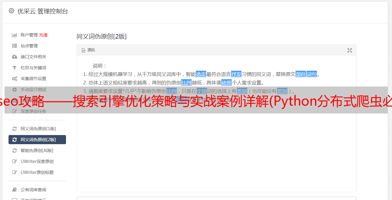 优采云 发布时间: 2022-03-16 19:06seo攻略——搜索引擎优化策略与实战案例详解(Python分布式爬虫必学框架ScrapyCore核心RDD(免费分享))