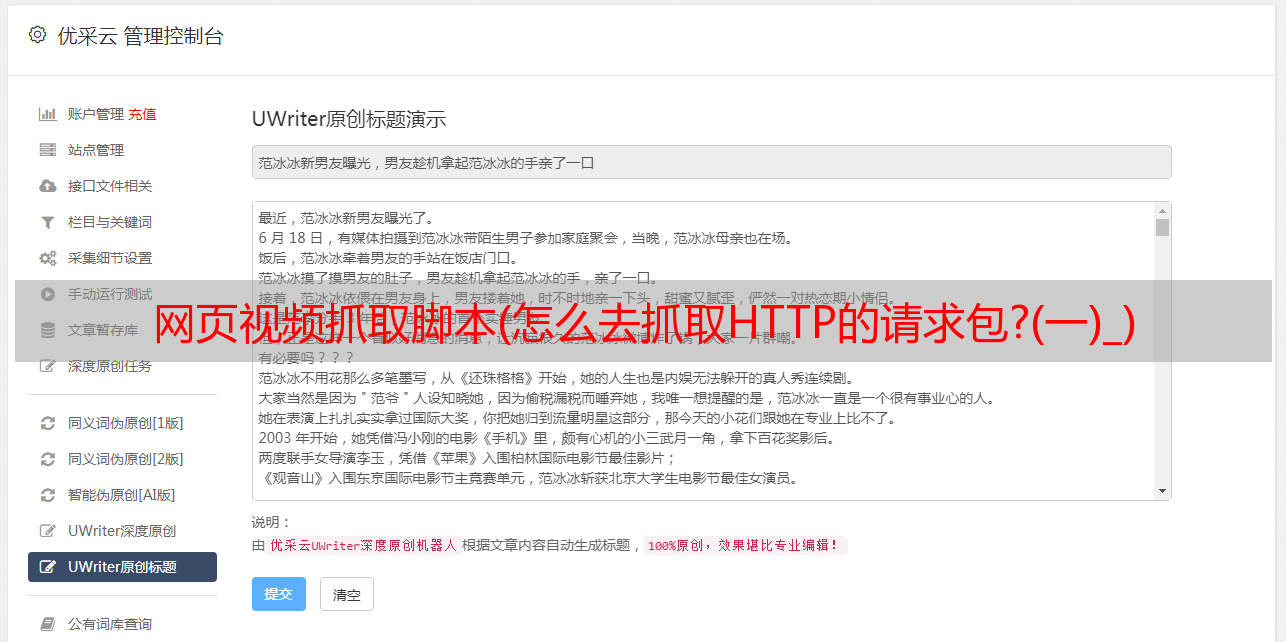 优采云 发布时间: 2022-03-17 00:15网页视频抓取脚本(怎么去抓取HTTP的请求包?(一)_)