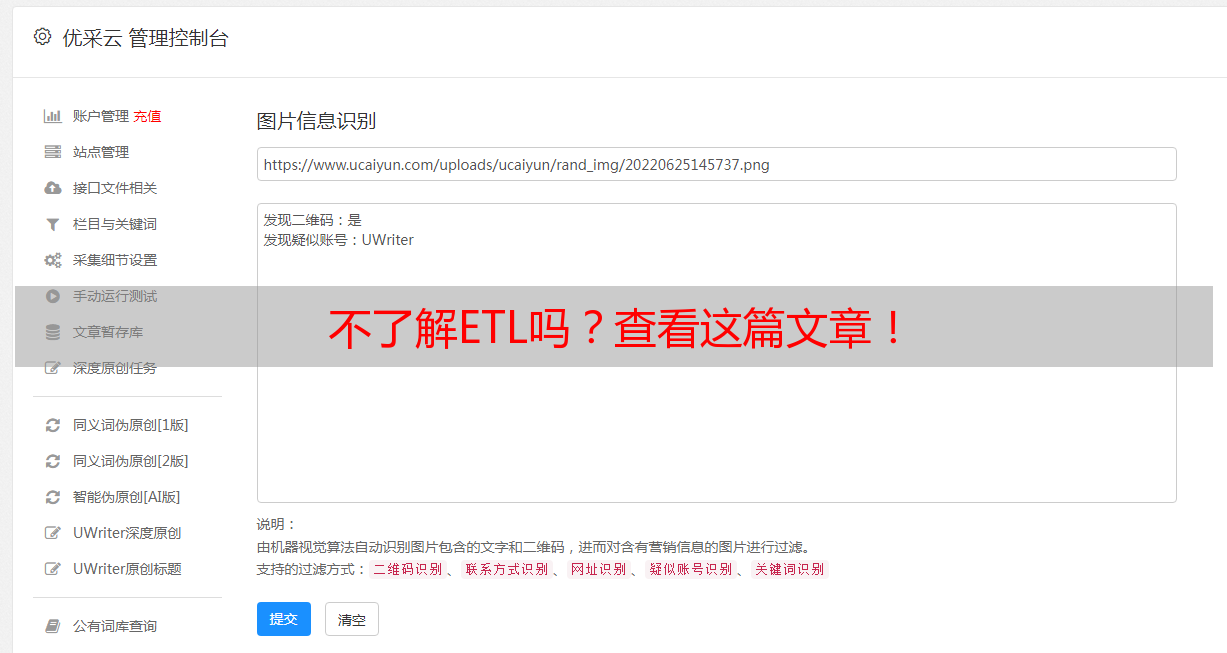 ETL处理分为五个主要模块,即: 数据提取,数据清理,库中的转换,规则检查和数据加载. 每个模块都可以灵活组合以形成ETL处理流程. 简要介绍每个模块的主要功能.